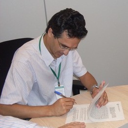 Presidente Karone Marllus assinando o termo de convênio.