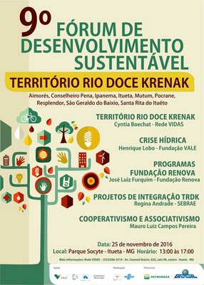 Aconteceu na última sexta, 25 de novembro, em Itueta (MG), o 9.º Fórum de Desenvolvimento Sustentável do Território Rio Doce Krenak que abrange os municípios de Aimorés, Conselheiro Pena, Ipanema, Itueta, Mutum, Pocrane, Resplendor, São Geraldo do Baixio e Santa Rita do Itueto. O Fórum foi promovido pela Rede Vidas em parceria com o SEBRAE.